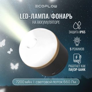 LED-лампа/фонарь на аккумуляторе EcoFlow Camping Light - аккумуляторный многофункциональный LED фонарь для туристических походов и дома с функцией PowerBank.