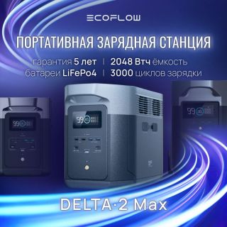 Портативная зарядная станция EcoFlow DELTA 2 Max выходной мощностью до 3000 Вт (в режиме X-Boost) для резервного и автономного питания дома, в автотрейлере, на кемпингах.