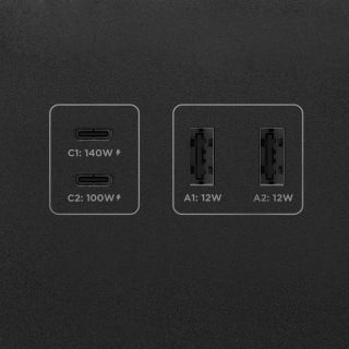 Выход USB-C: 2 порта, USB-C1 5/9/12/15В=3 A, 20/28 В=5 A, 140 Вт макс., USB-C25/9/12/15 В=3 А, 20 В=5 А, 100 Вт макс.