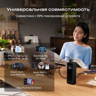 - Крупный TFT-дисплей отображение всей информации о состоянии повербанка в реальном времени.