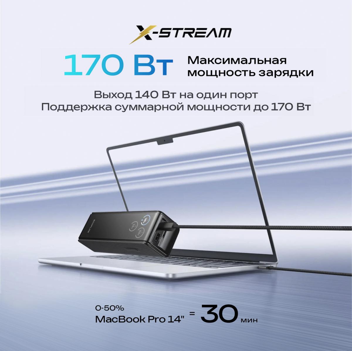 - Быстрая зарядка 170 Вт одновременная зарядка до 3 устройств с суммарной мощностью до 170 Вт. Максимальная мощность при использовании одного порта — 140 Вт