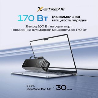 - Быстрая зарядка 170 Вт одновременная зарядка до 4 устройств с суммарной мощностью до 170 Вт. Максимальная мощность при использовании одного порта — 100 Вт