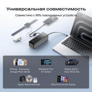 Порт USB-C/встроенный кабель/выдвижной кабель вход 100 Вт.Примечание одновременная зарядка через несколько портов недоступна, используйте один порт для максимальной скорости зарядки до 100 Вт