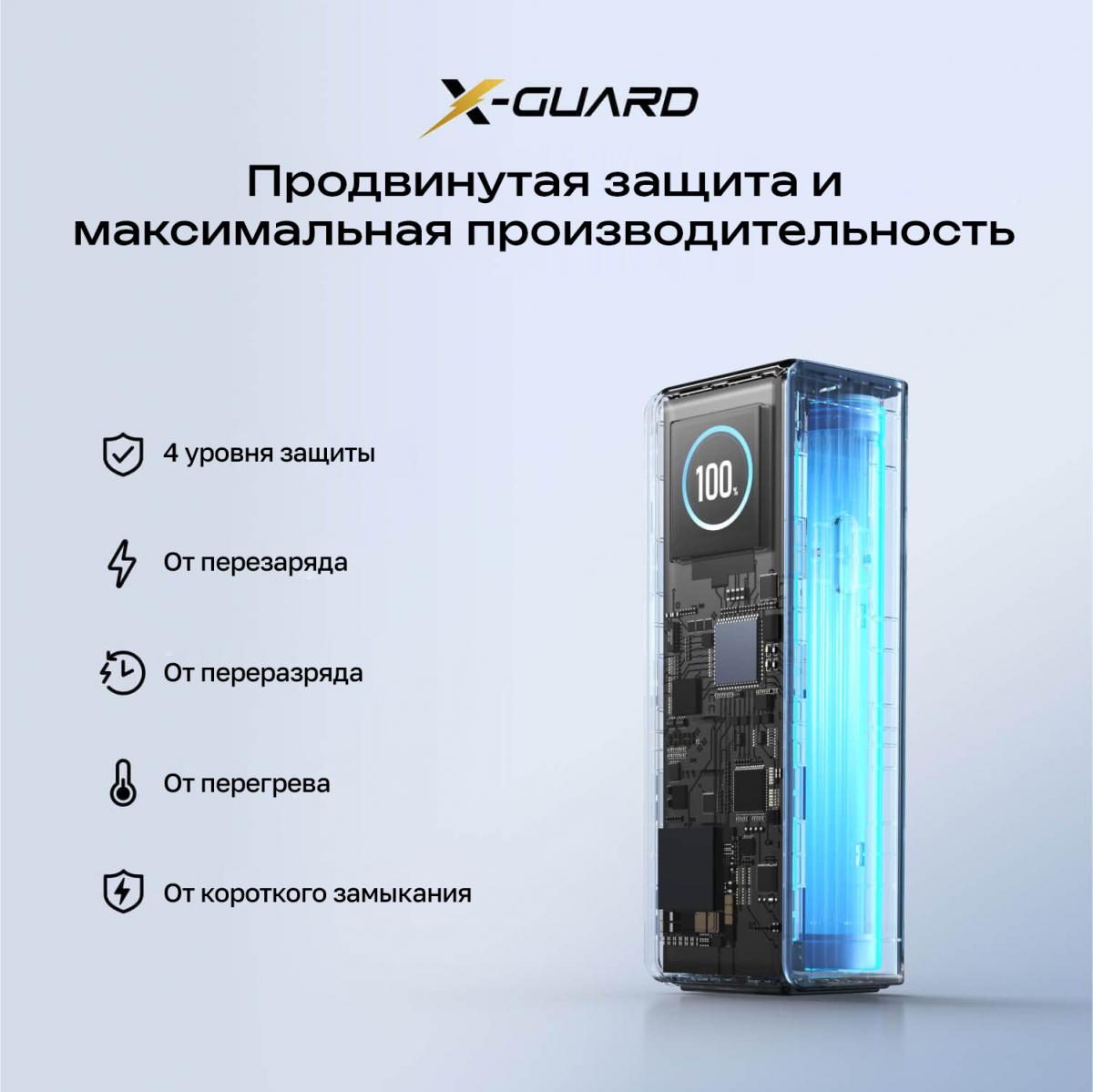 - Крупный TFT-дисплей отображение всей информации о состоянии повербанка в реальном времени.