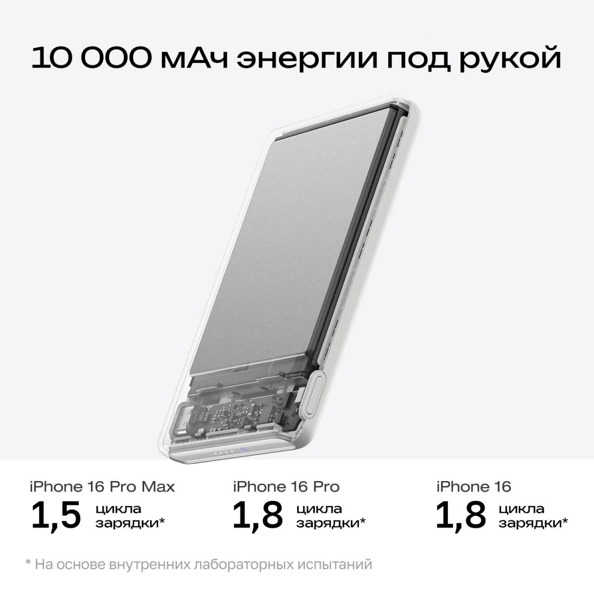 - 10 000 мАч всегда под рукой емкости достаточно для двух полных зарядок базового iPhone с 0 до 100%