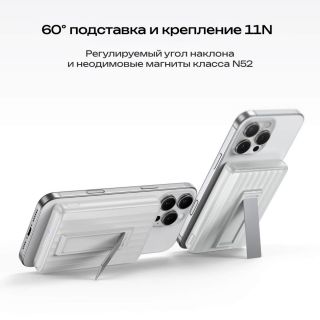 - Надежное магнитное крепление 11N неодимовые магниты класса N52 удерживают повербанк на смартфоне даже при интенсивной тряске, например, во время пробежки или велопрогулки