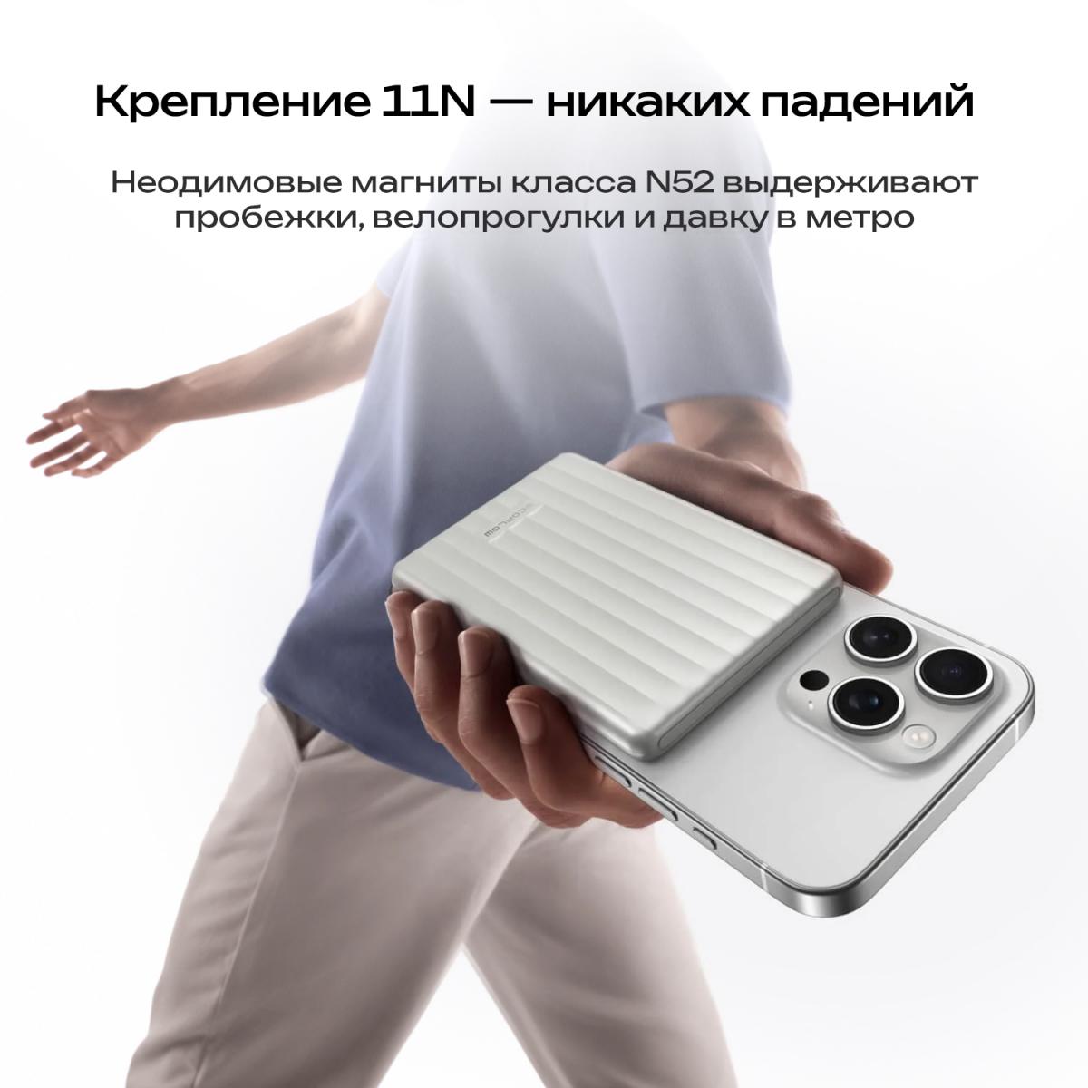 Надежное магнитное крепление 11N неодимовые магниты класса N52 удерживают повербанк на смартфоне даже при интенсивной тряске, например, во время пробежки или велопрогулки