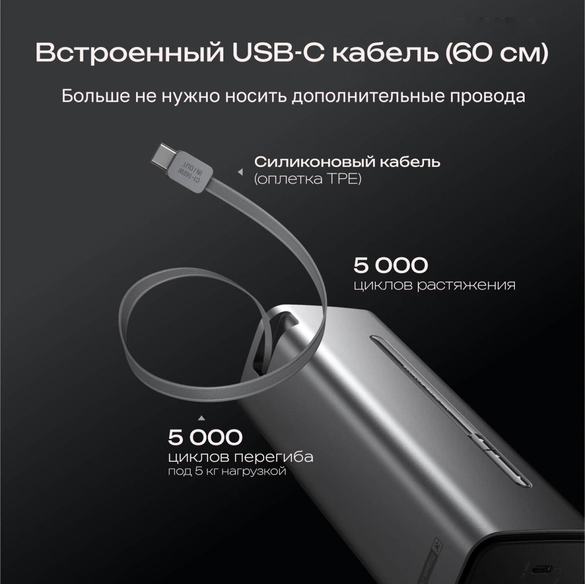 3 порта USB-C + встроенный кабель (суммарно 300 Вт)